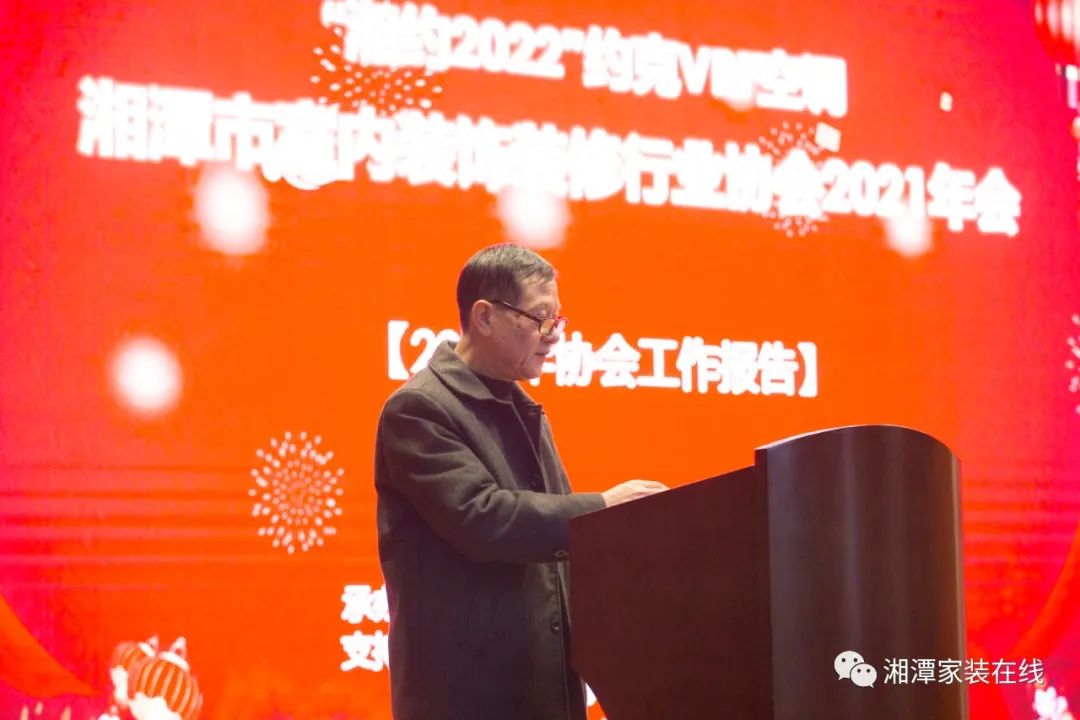 毛伟胜在报告中说,2021年,协会新增入会单位14家,各项工作不断刷新,影响力不断扩大。6月份,协会与湘潭广播电台联合开办《安居时刻》专题装饰类栏目,把行业的影响力,传播到了四面八方;8月中旬,在全市疫情解除风险管制后,协会迅速组织捐款捐物,对全市14个小区在抗击疫情一线的物业管理小区人员进行了慰问,共捐得现金9500元、口罩1千个。中国室内装饰协会将慰问活动向全国作了报道;10月份,协会积极参加市住建局组织的全省职业技能竞赛活动,金煌公司、达达公司积极选派队员前往长沙参赛,受到市住建局的表扬;11月初,协会举办了《小区装修建筑安全知识》培训学习,60余家会员单位参加培训;12月份,协会继续举办了“会员主题活动日·金海华承暖通公司专场活动”,约30家会员单位参加活动,有效促进了会员之间的互动。