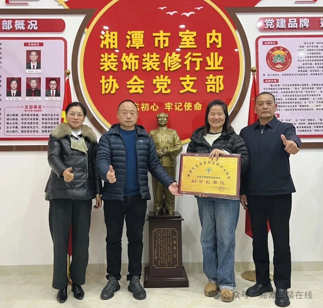 2025年12月31日,湘潭市室内装饰装修行业协会举行新任副会长授牌与新会员入会仪式。会长刘正洪,副会长何闯、冯德龙、朱后胜、陈剑,新任副会长刘辉群等参加会议。